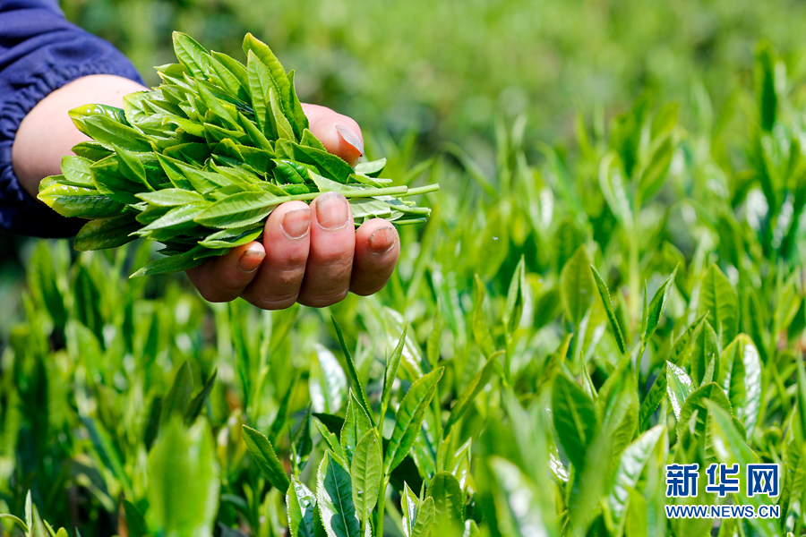 4月12日,茶农在黄山市黄山区猴坑村太平猴魁生态茶园采摘鲜叶。