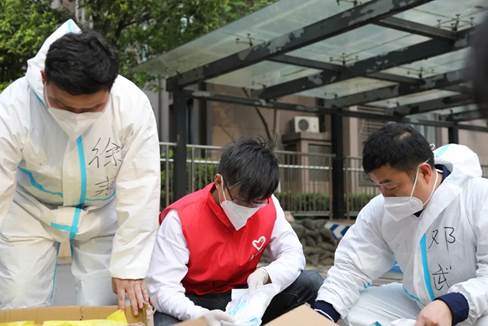 为了保障小区业主生活物资的高效配送,社区制定了四级配送线,送货公司——道路查验点摆渡车——小区门口配送点——楼栋配送员,宇烁光电总经理带领其他4名党员志愿者深入一线,负责“小区门口配送点”环节的餐饮物资配送。公司志愿者迅速熟悉了解12个楼栋的位置分布,保证物资准确到位。为了让业主尽快拿到急需物品,他们一趟一趟不停歇地步行于各楼栋之间。
