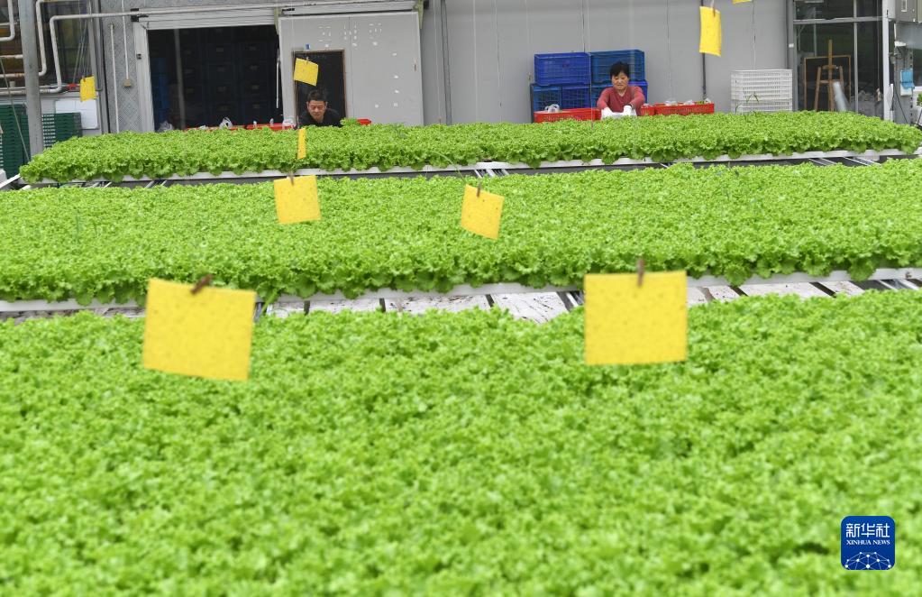 5月12日,工作人员在合肥市肥西县花岗镇现代农业示范区一蔬菜种植基地内收获蔬菜。