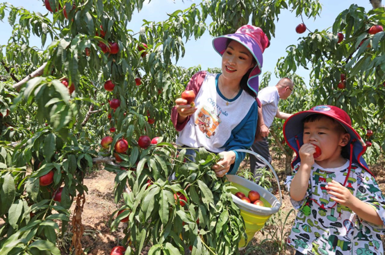 市民在全椒县西王镇张八山百亩油桃果园采摘。沈果 摄