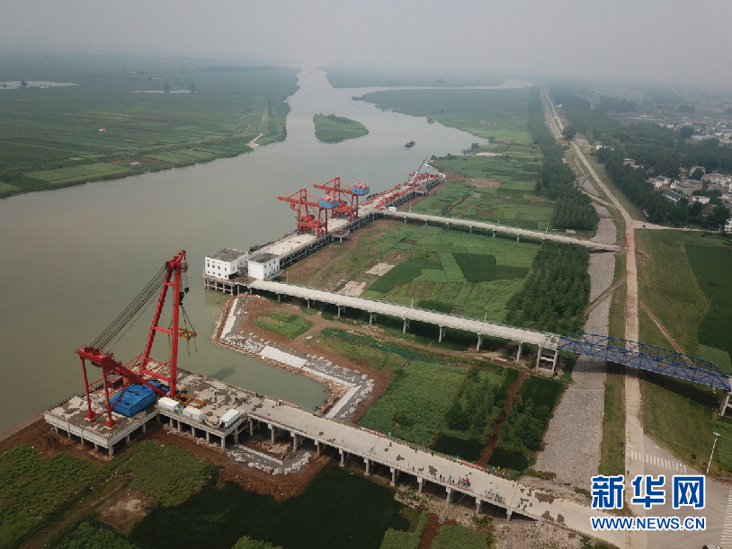 航拍位于淮河岸边的中安煤化工产业园专用码头。(陈昂 摄)