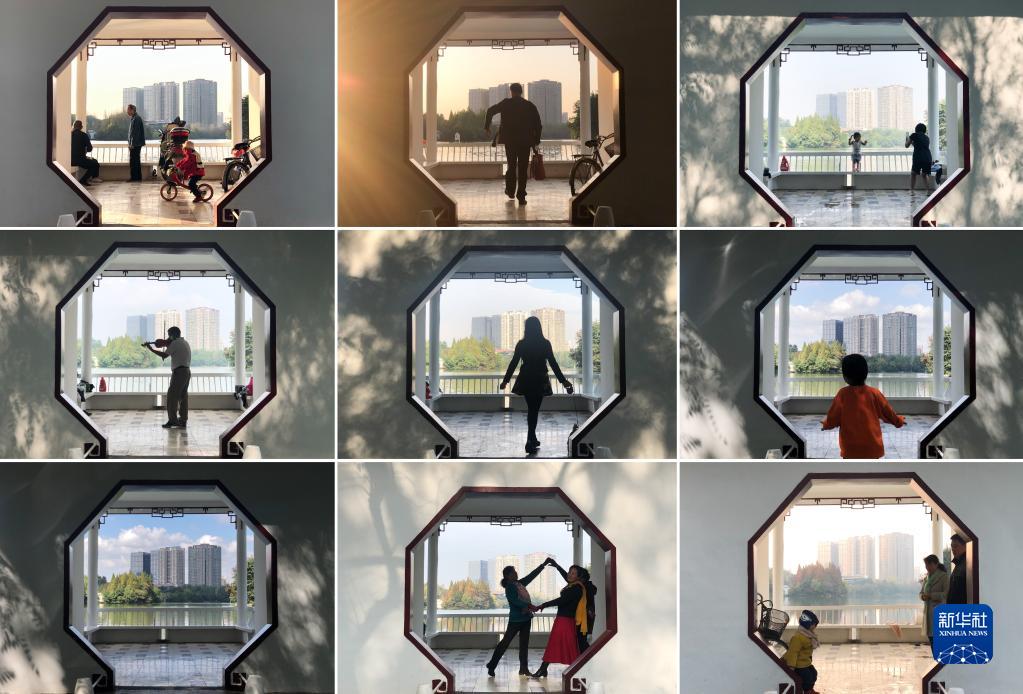 这是2020年一年内拍摄的合肥市环城公园内市民生活休闲场景的拼版照片(从左至右、由上至下拍摄时间依次为2020年的3月23日、4月24日、9月5日、9月11日、10月6日、10月9日、10月9日、11月29日、12月5日)。