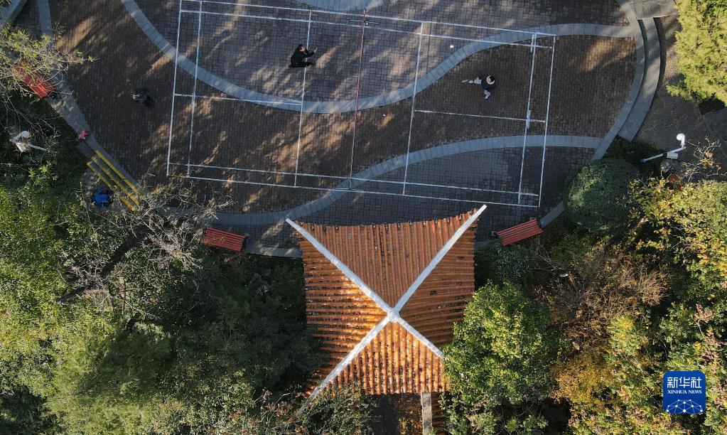 12月2日,市民在合肥市环城公园打羽毛球(无人机照片)。