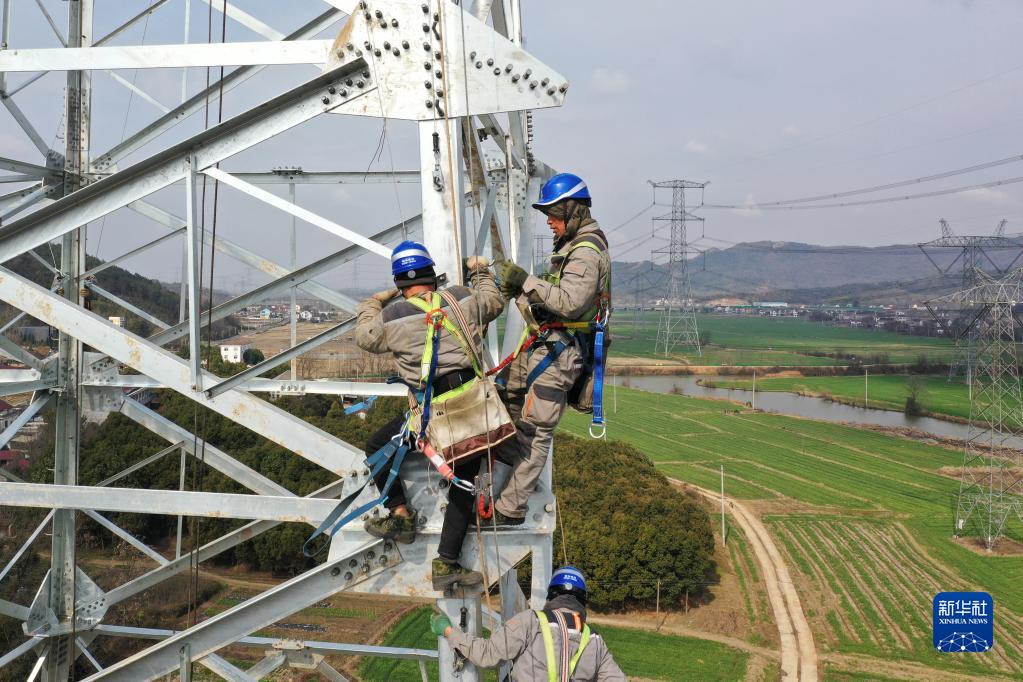 春节过后,安徽电网重点工程建设加速推进,电力工人奋战在施工一线,确保能源通道重点工程进度。