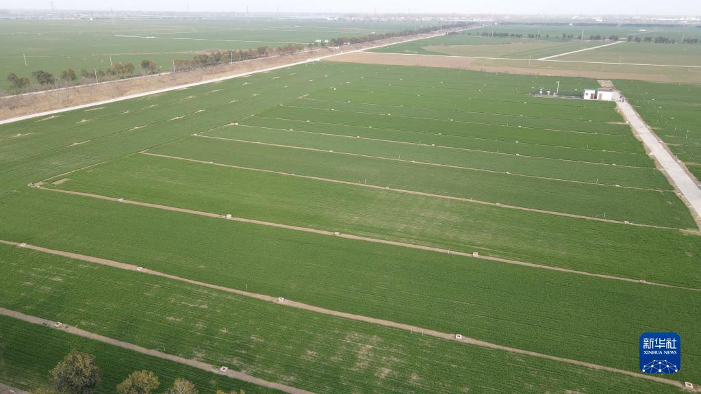 2月21日拍摄的太和县淙祥现代农业种植专业合作社里的高产攻关示范田(无人机照片)。