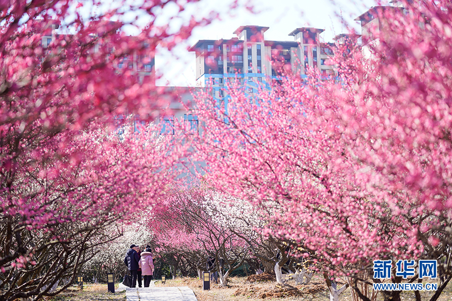 2月26日,安徽省铜陵市市委党校梅园内春意浓浓,梅花绽放,暗香浮动,令人陶醉。新华网发(陈磊 摄)