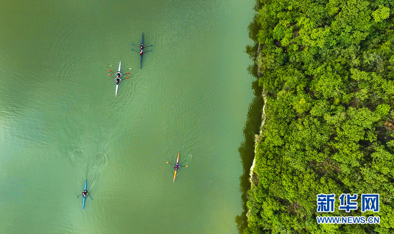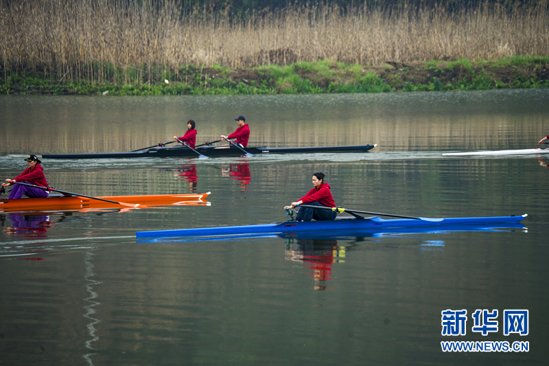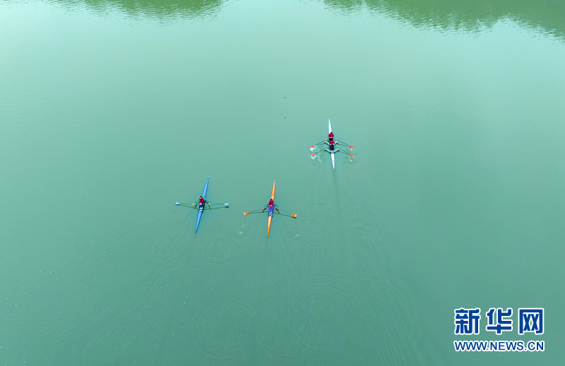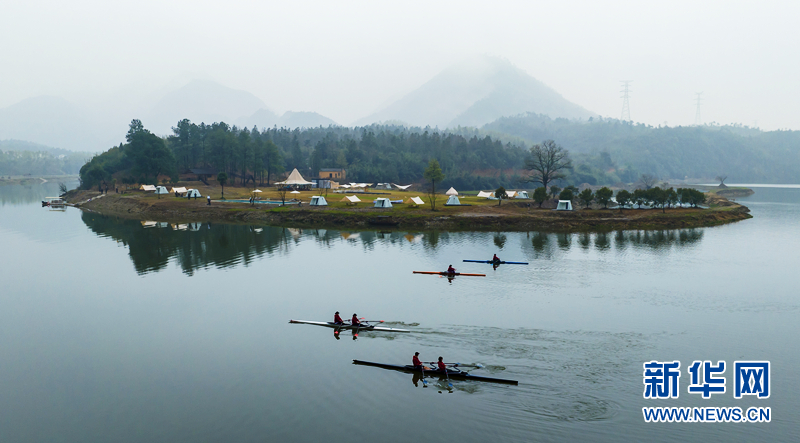 近日,安徽省宣城市泾县黄村镇平垣村春色如画,花香怡人,吸引了一波又一波全国各地的赛艇爱好者前来训练。新华网发(李晓红 摄)