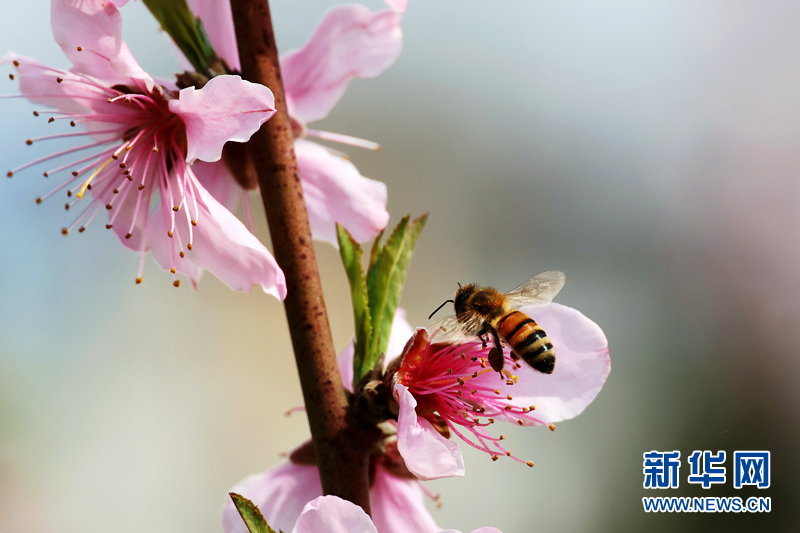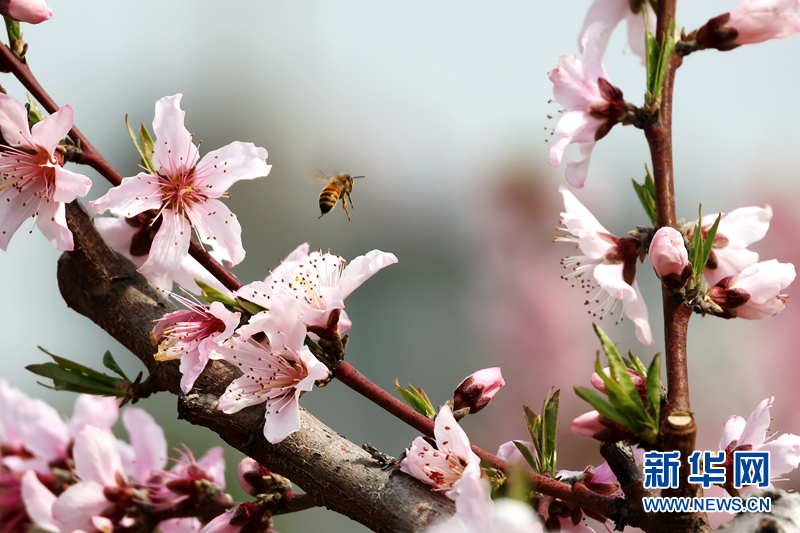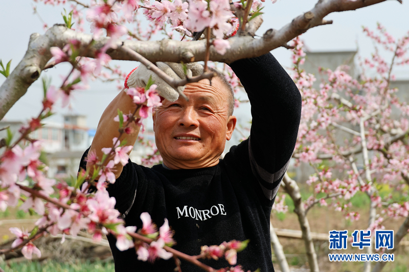 阳春三月,安徽省阜阳市颍上县刘集乡汪郢村桃园里桃花竞相开放,粉白相间的桃花缀满枝头,远远望去灿若云霞、婀娜多姿,形成一片花的海洋,美不胜收。