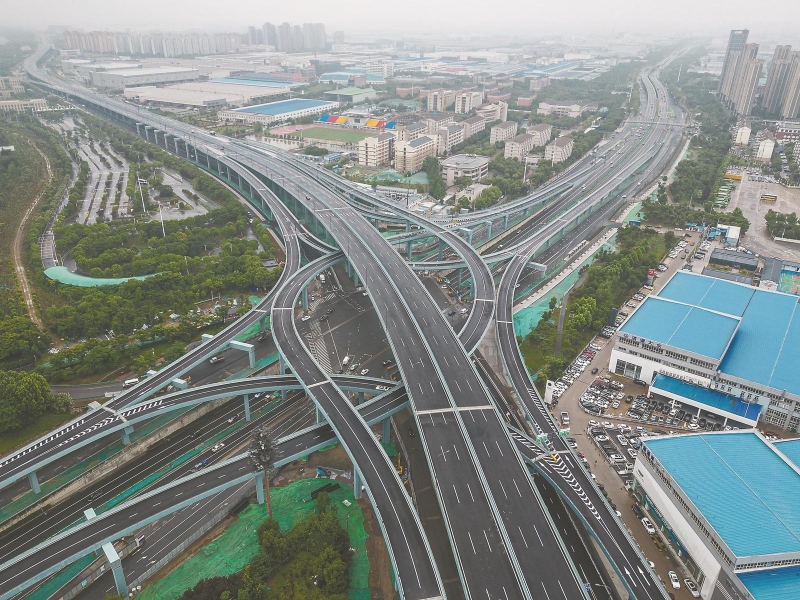 5月24日航拍的方兴大道节点互通立交桥。记者 范柏文 通讯员 宋桢 摄