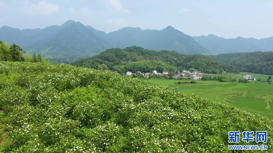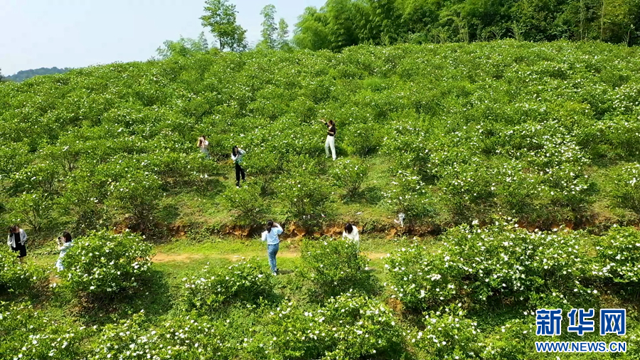 眼下正值栀子花的盛花期,在安徽省旌德县霍家桥村,近千亩栀子花竞相开放,吸引众多游客前来赏花拍照。
