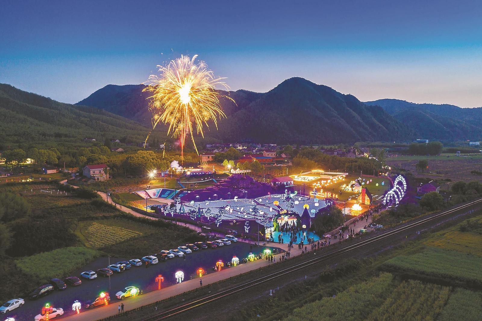 宁国市港口镇西村村道两旁的灯光艺术装置让这个依山傍水的小山村在夜晚焕发新容光。通讯员 章念东 李晓红 摄