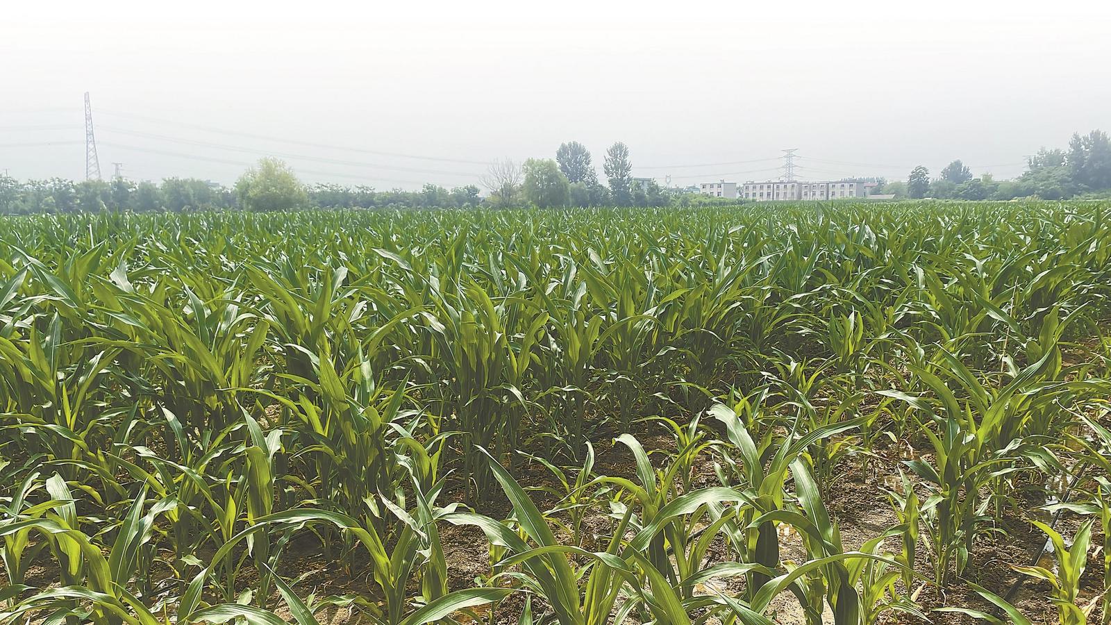 6月13日,在阜阳市颍州区西湖镇梳妆村的农田里,玉米已有半人多高,叶片翠绿,植株健壮。记者 许昊杰 摄