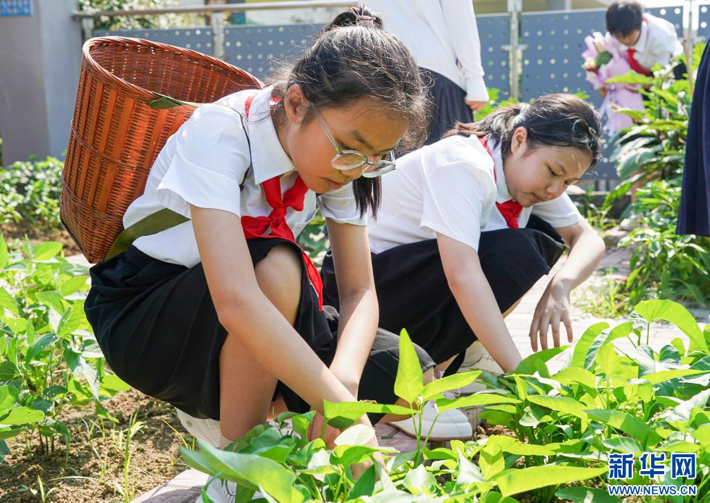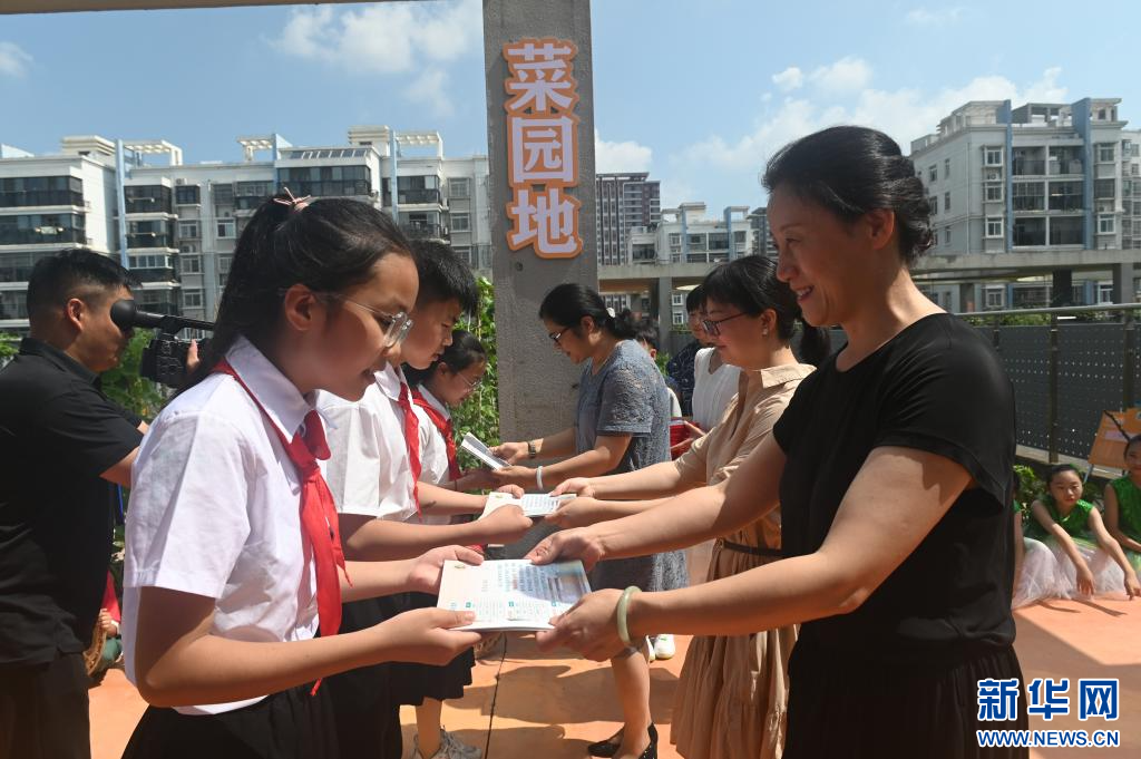 当日,安徽省合肥市徽州小学美丹校区劳动课程学习毕业证颁发仪式在该校教学楼顶的“空中农场”举行,六年级毕业生们最后一次为“空中农场”的农作物浇水、施肥,用劳动点亮毕业季。