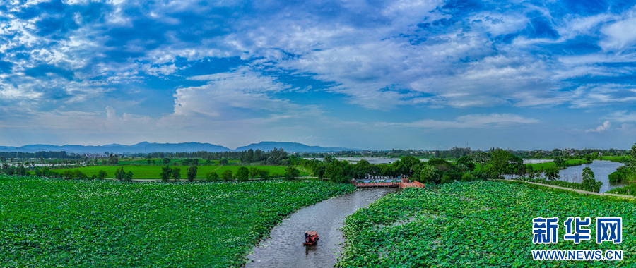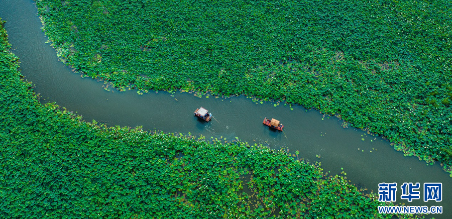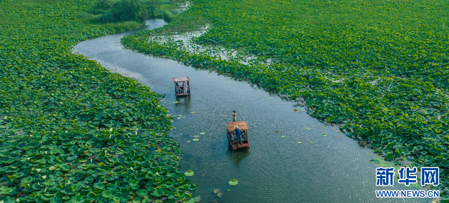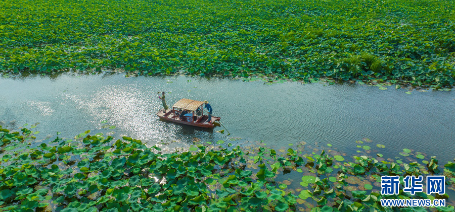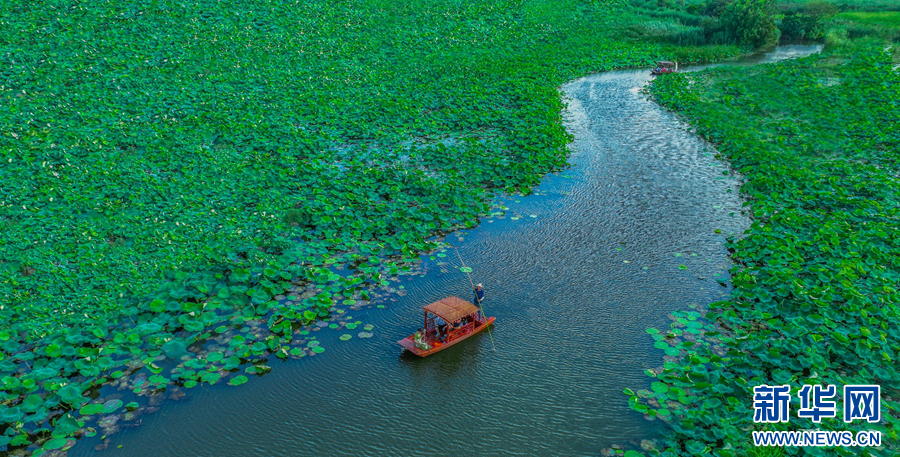 盛夏时节,安徽省马鞍山市含山县大渔滩省级湿地公园荷花开放,撑一支长篙,泛一叶小舟,目光所及皆是美景。