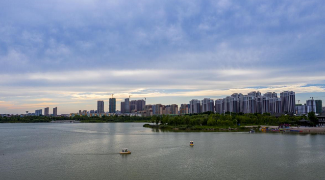 正值三伏天,在安徽省淮北市,由塌陷复垦的环湖风景区乾隆湖公园已经成为市民休闲纳凉的好去处。新华网发(张伟 摄)
