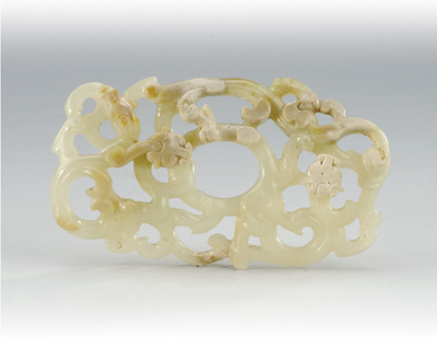 镂雕三蟠龙心形玉佩。