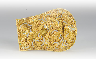 累丝镶宝八龙纹金带扣。