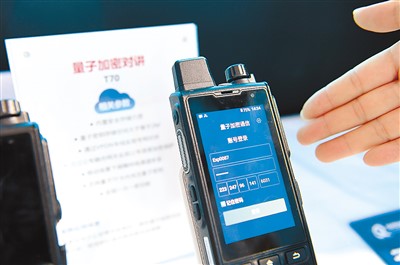 2022年9月4日,在北京,一家参展企业代表在2022年国家网络安全宣传周网络安全博览会上介绍量子加密对讲。