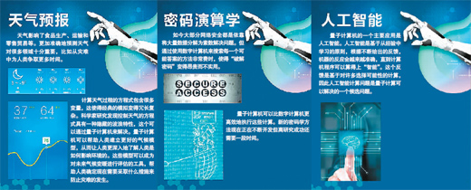 在量子计算领域,由于其本身对环境的干扰非常敏感,潘建伟指出,真要造出一台通用的量子计算机大概还需要15年甚至更长的时间,因为会涉及几百万量子比特的相关操纵。因此,学界定义了3个阶段性的目标:第一阶段是能够操纵50到60个量子比特,使处理某些特殊计算问题时超越传统计算机;第二阶段是能够操纵数百个甚至数千个量子比特,构建某种专用的量子计算机和量子模拟机,揭示某些经典计算机无法解决的复杂物理系统的规律;第三阶段是构建可编程的、通用的量子计算机。