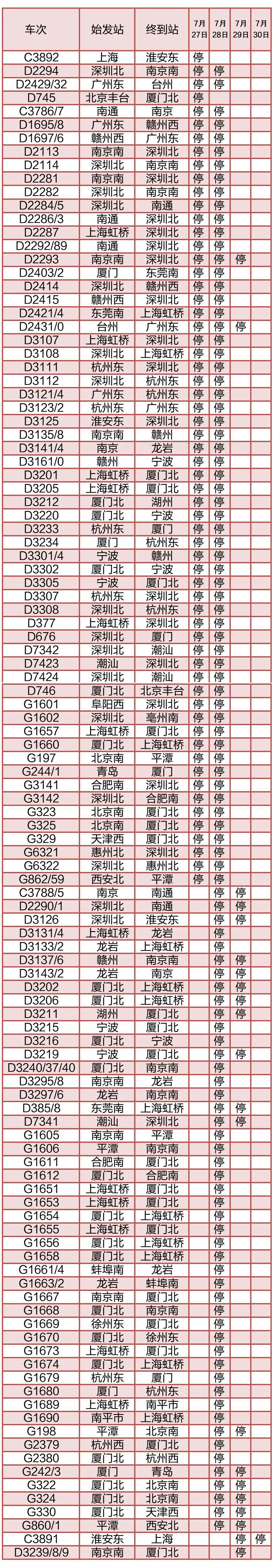 受台风“杜苏芮”影响,为确保铁路运输安全,7月27日起,长三角铁路部分列车停运。