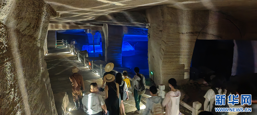 7月28日,游客在安徽省黄山市花山谜窟景区游玩。