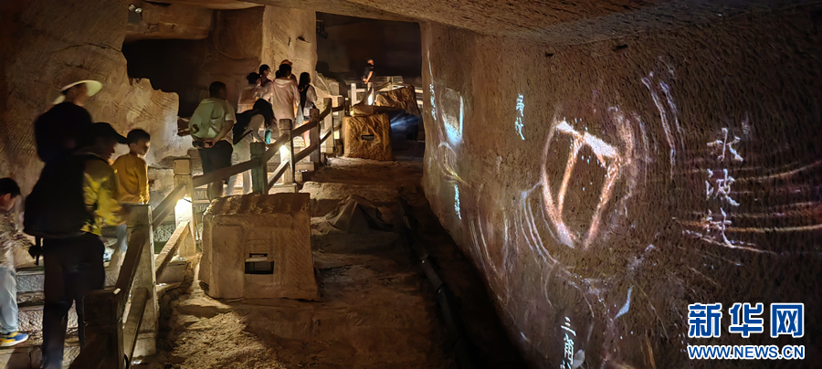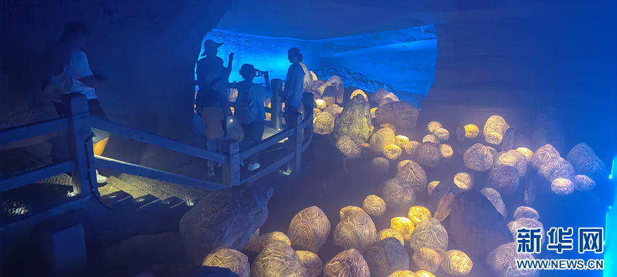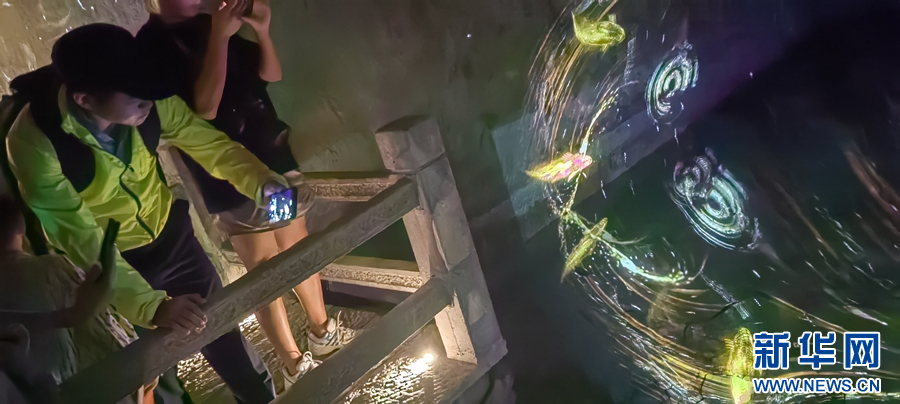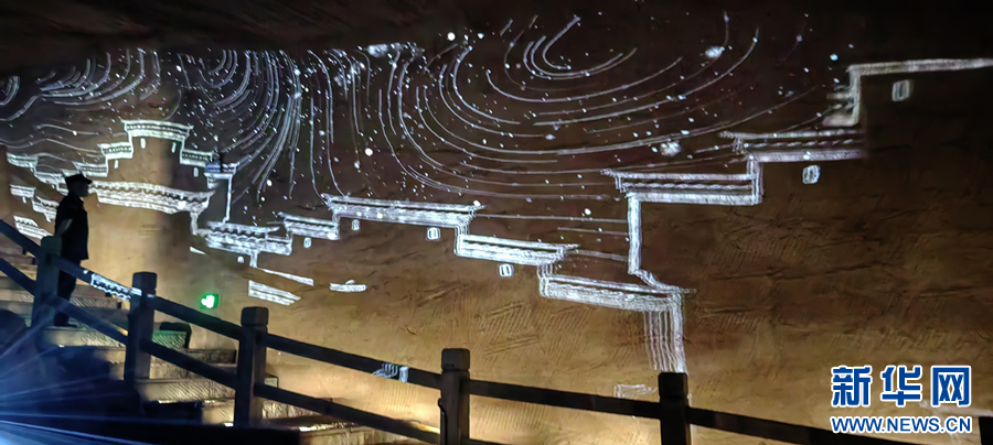 近年来,为打造旅游新业态、丰富传统景区文化内涵,该景区利用石窟内部的石壁,创意推出“花山灯光秀”项目,把皖南山水田园风格,与新安江风光巧妙融合,吸引了各地游客前来游览打卡,成为旅游产业数字化转型的新亮点。新华网发(王雷 摄)