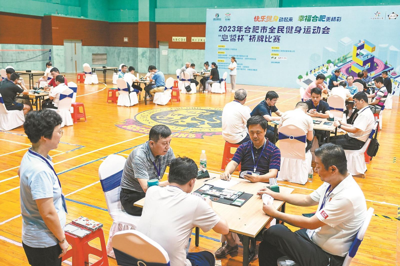 8月5日,2023年合肥市全民健身运动会桥牌比赛在中加学校精彩开赛,近百名桥牌爱好者前来参与。桥牌是世界三大智力运动之一,也是世界智力运动会的主要比赛项目。本报记者 范柏文 摄