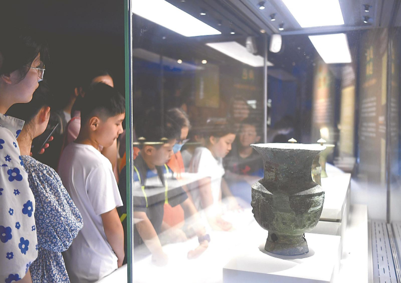 假日里,小朋友在安徽博物馆新馆参观青铜器展览。本报通讯员 陈三虎 摄
