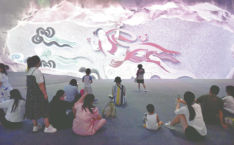 近日,安徽省美术馆内,市民在欣赏敦煌壁画沉浸式影片。 本报记者 程 兆 摄