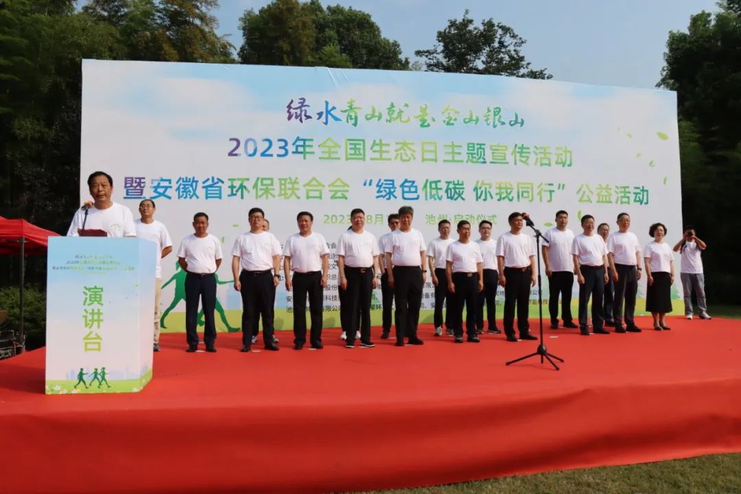 8月15日,安徽省环保联合会在池州平天湖开展2023全国生态日主题宣传活动暨安徽省环保联合会“绿色低碳 你我同行”公益活动。