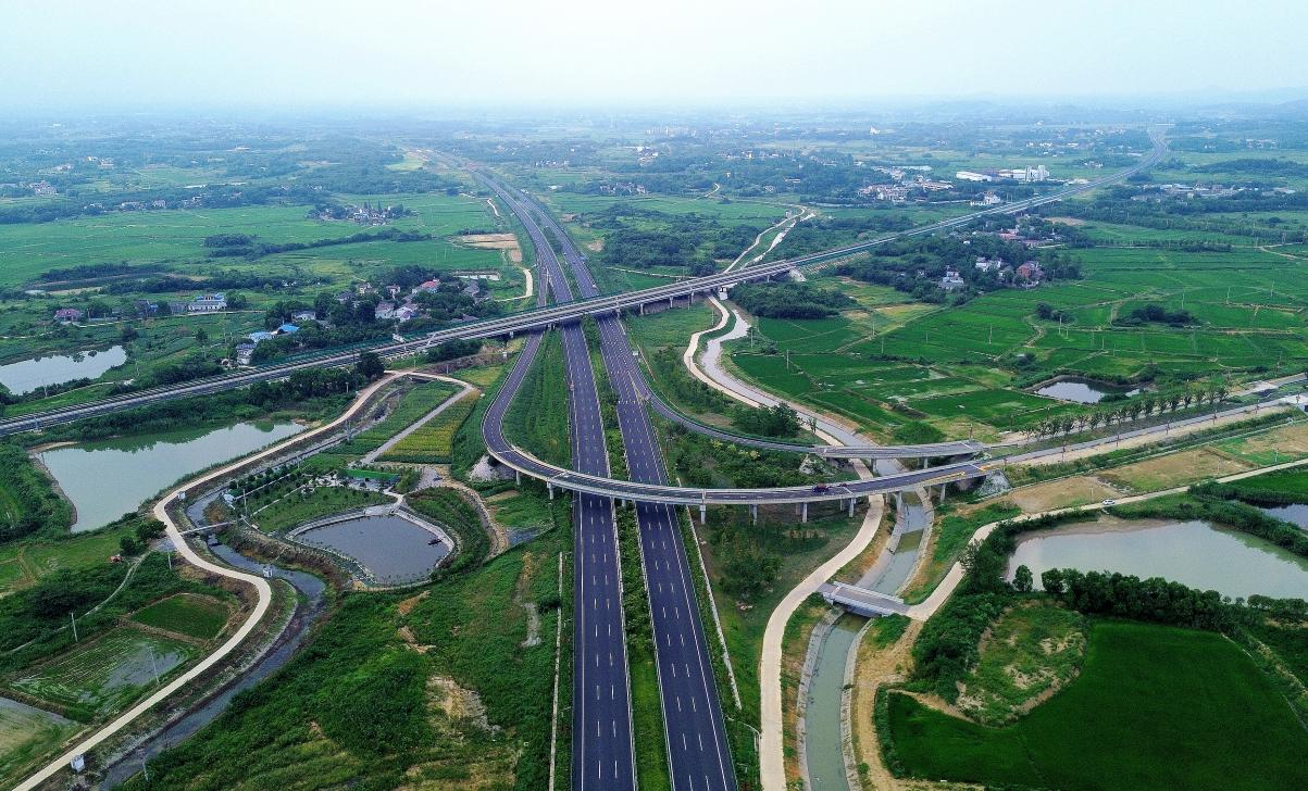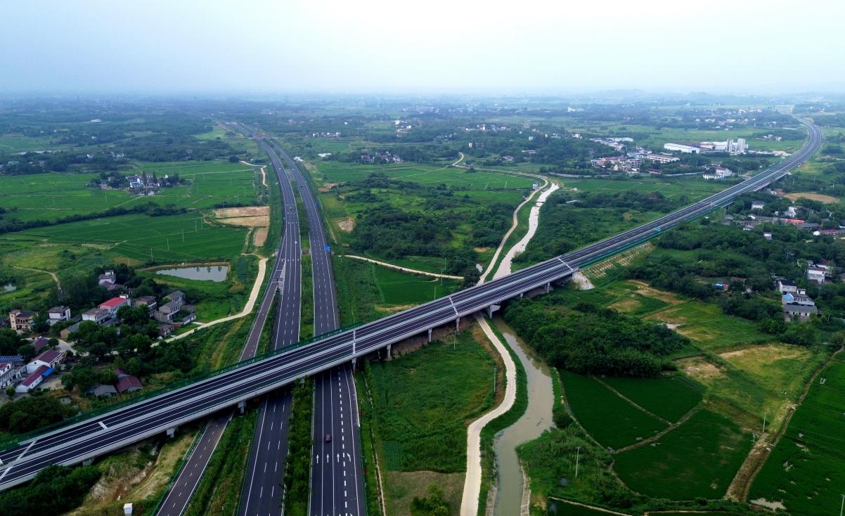 近日,航拍安徽省合肥市庐江县合(肥)庐(江)徽州大道与岳(西)武(汉)高速及正在建设中的冶父山风景区道路交叉枢纽。