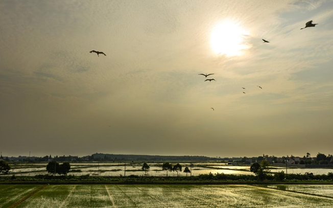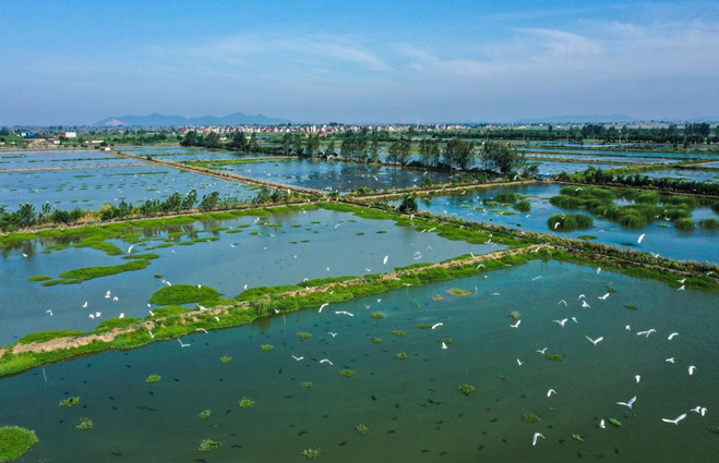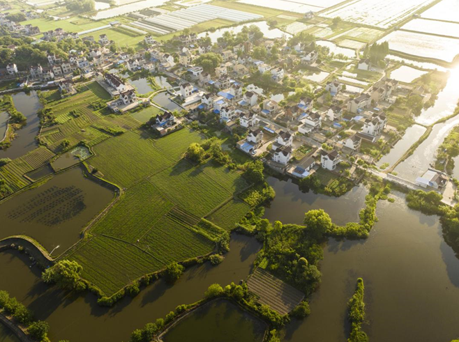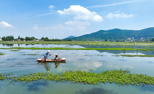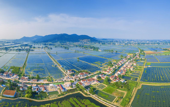 安徽省当涂县石桥镇是典型的江南水乡,温婉秀美、风景如画。初秋时节,在阳光的映照下,一块块水田如同一面面镜子,点缀在绿水青山间。青青的稻田与乡村屋舍、乡间小路相互映衬,勾勒出一幅美丽的田园画卷。新华网发(张明伟 王玉实 濮勇 摄)