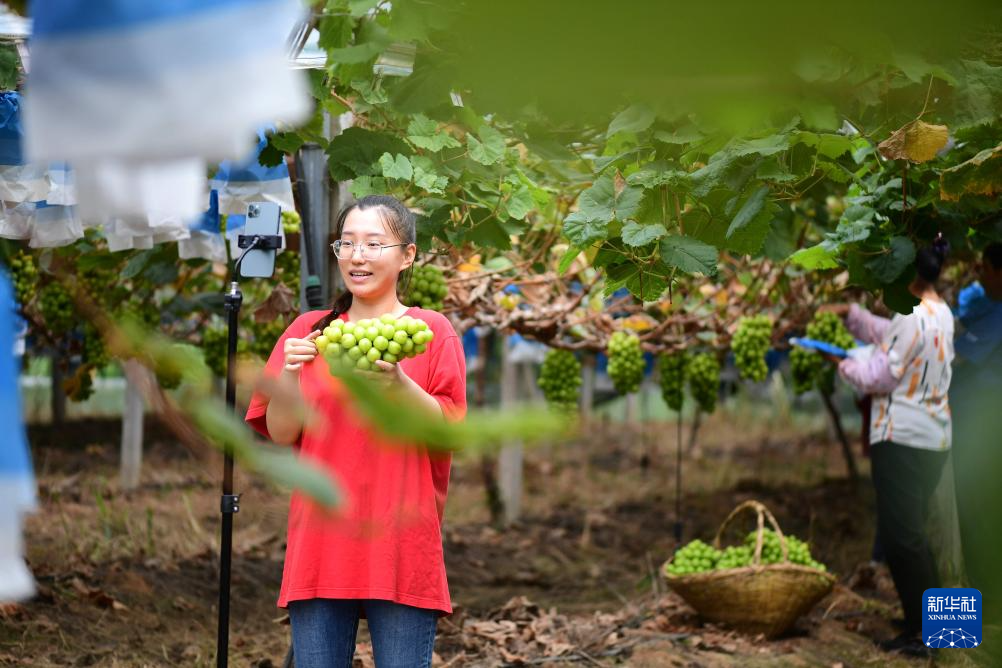 金秋时节,潘雅洁家的60多亩阳光玫瑰葡萄喜获丰收,潘雅洁除了进行日常管理、采摘、销售外,还发挥特长,在田间地头直播推介自家的葡萄。潘雅洁说,做农业很辛苦,要耐得住寂寞,看着丰收的场景,一切付出都值得。
