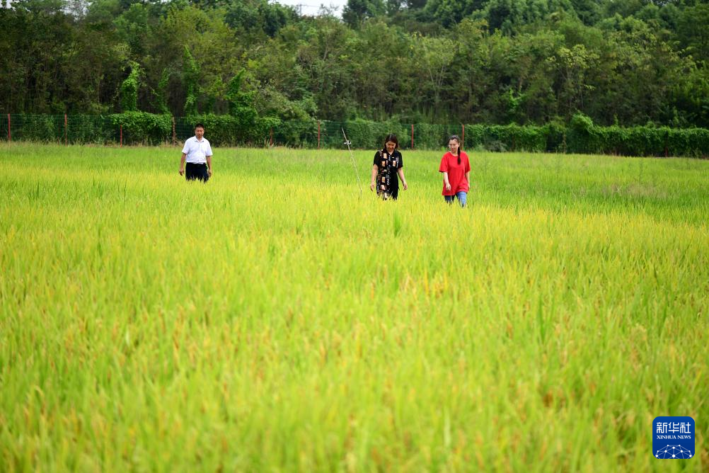 8月30日,潘雅洁(右一)和父母行走在肥西县紫蓬镇的稻田里。新华社发(徐勇 摄)