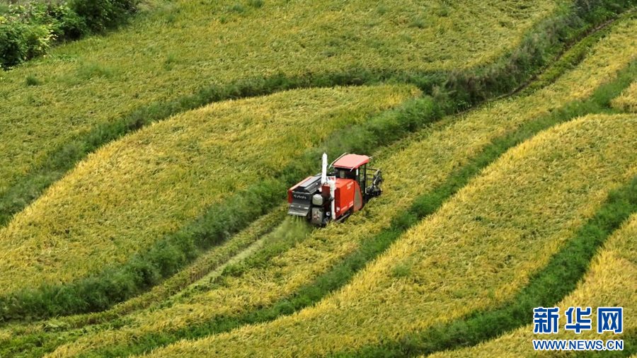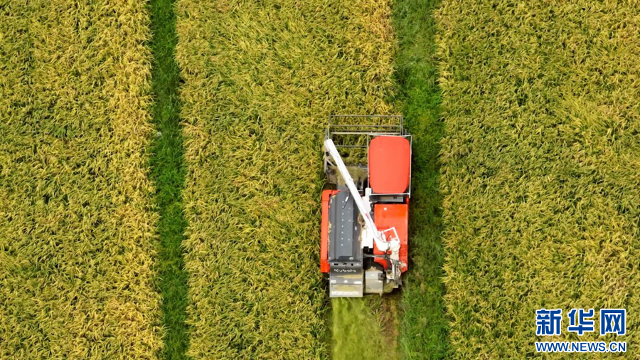 入秋以来,安徽省望江县凉泉乡3.5万亩单季稻陆续开镰,田野里稻浪翻滚,机器轰鸣,农民们正抢抓农时,确保颗粒归仓。