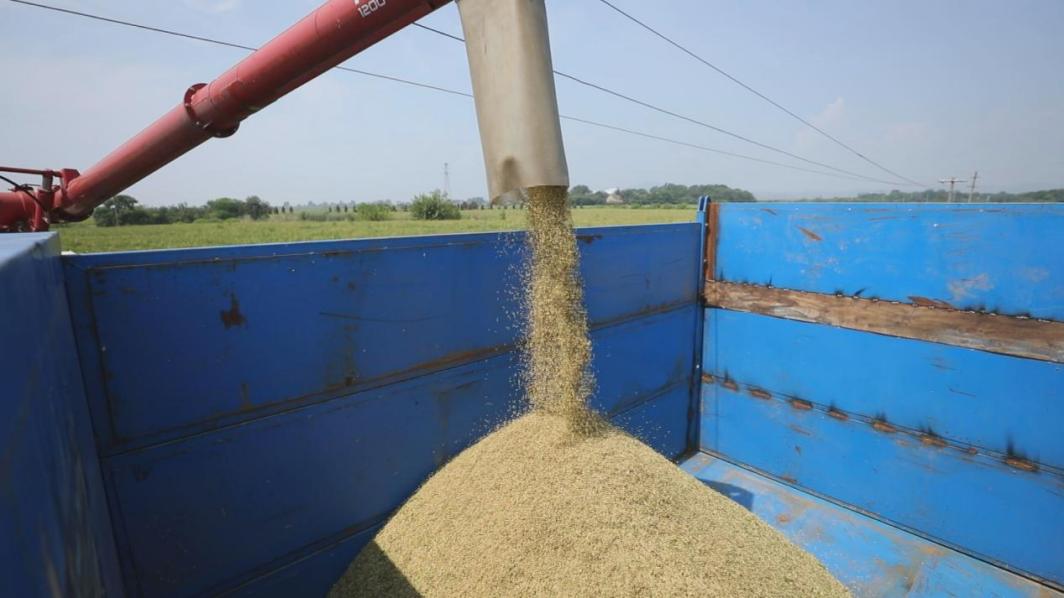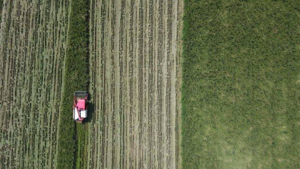 日前,安徽省马鞍山市和县1.2万亩再生稻头茬进入成熟收获期,稻田一派丰收景象,农户正抢抓晴好天气全力抢收,确保颗粒归仓。