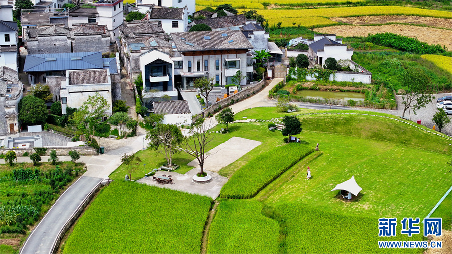 9月6日,在安徽省黄山市黟县碧阳镇关麓村,大片青黄色的稻田与错落的徽派民居相映成趣,宛如一幅秋日田园画卷。