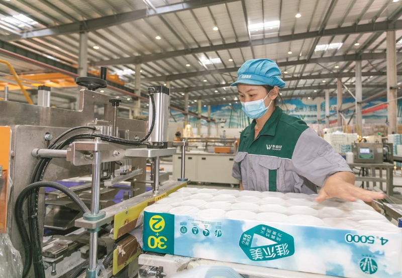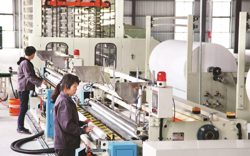 宿马园区泰盛纸业工人在加紧生产。(资料图片)