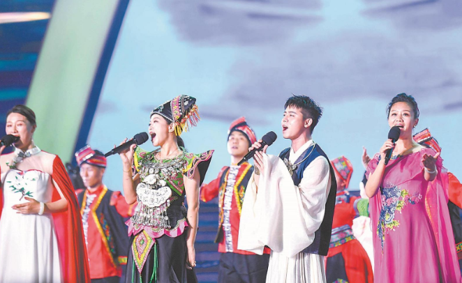 演员在表演音乐剧《对歌对到日落坡》。本报记者 李 博 罗 宝 摄