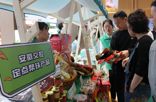 在肥东服务区大厅,20多家参展企业搭建一个个展台,集中展销集团帮扶地区农产品,包括枞阳媒鸭、吴山挂面、石台高山辣椒、顾桥陈醋、寿州香草、宁国山核桃等100多种安徽各地优质特产。绘有“中国农民丰收节”“安徽农产品 安心好产品”的标语和丰收图景的宣传画,让服务区更加充满着丰收的喜悦氛围。