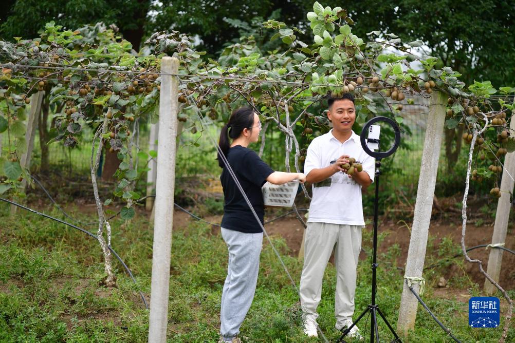 9月26日,段鹏飞在种植园里直播推介猕猴桃。