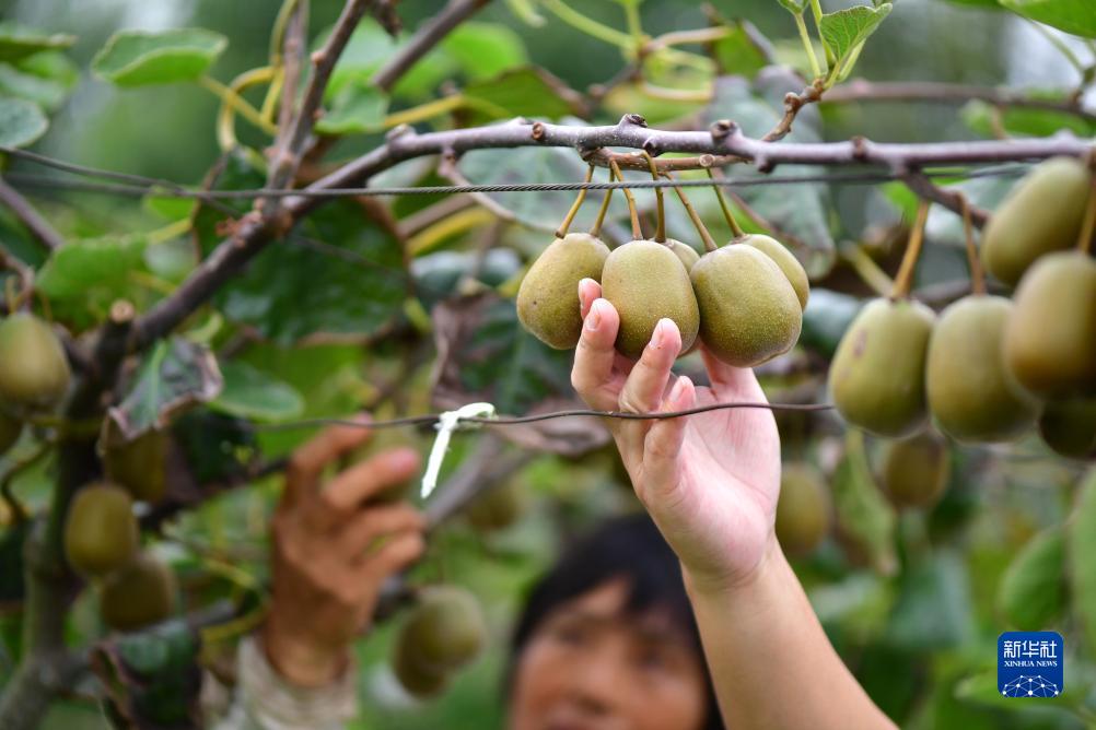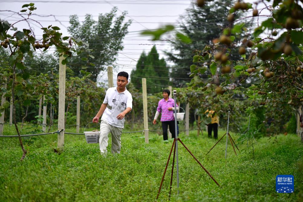 9月26日,段鹏飞在种植园里采摘猕猴桃。