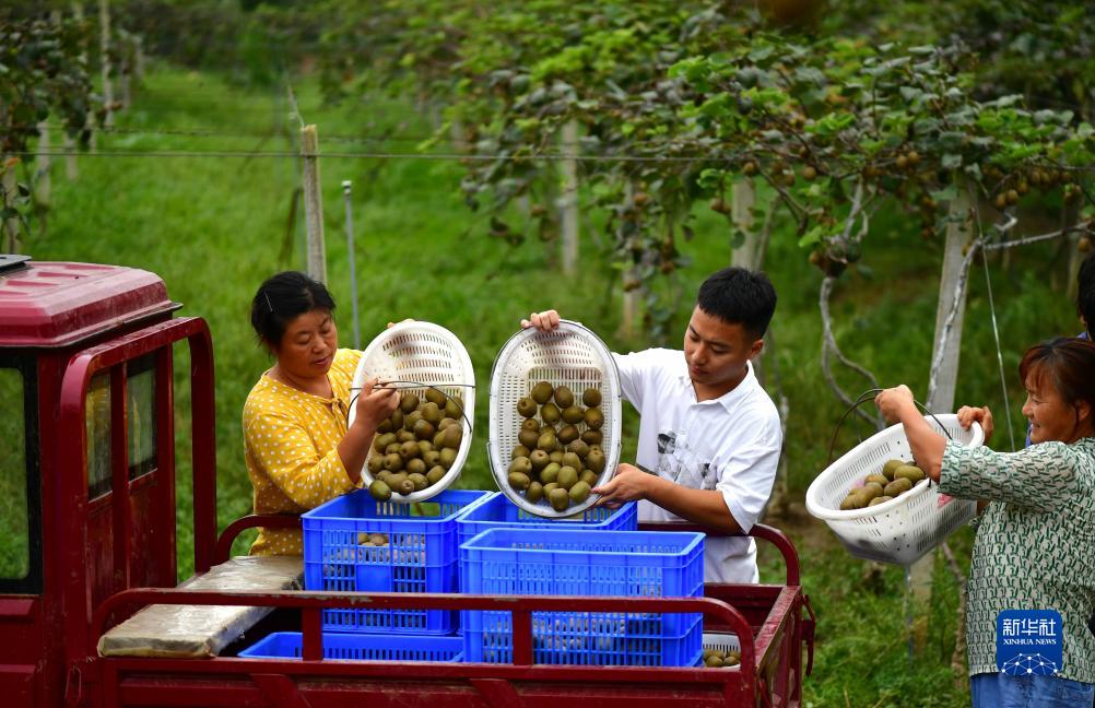 9月26日,段鹏飞在种植园里装运刚采摘的猕猴桃。