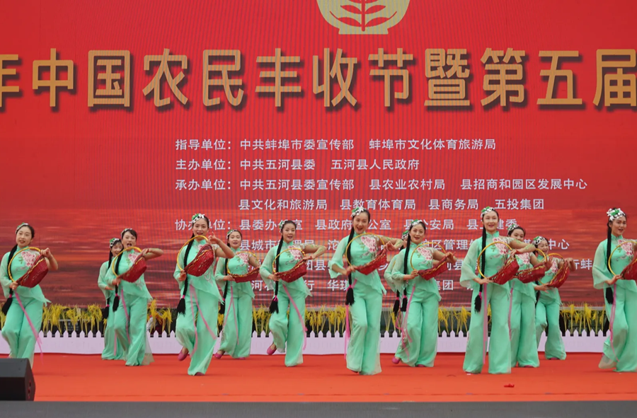 伴着铿锵的锣鼓声,2023年农民丰收节暨第五届五河螃蟹节正式开幕。活动开场,花鼓灯《水乡鼓韵》、舞蹈《老百姓的菜篮子》等精彩的歌舞表演,展示了五河县的民俗风情和农民丰收的喜悦。