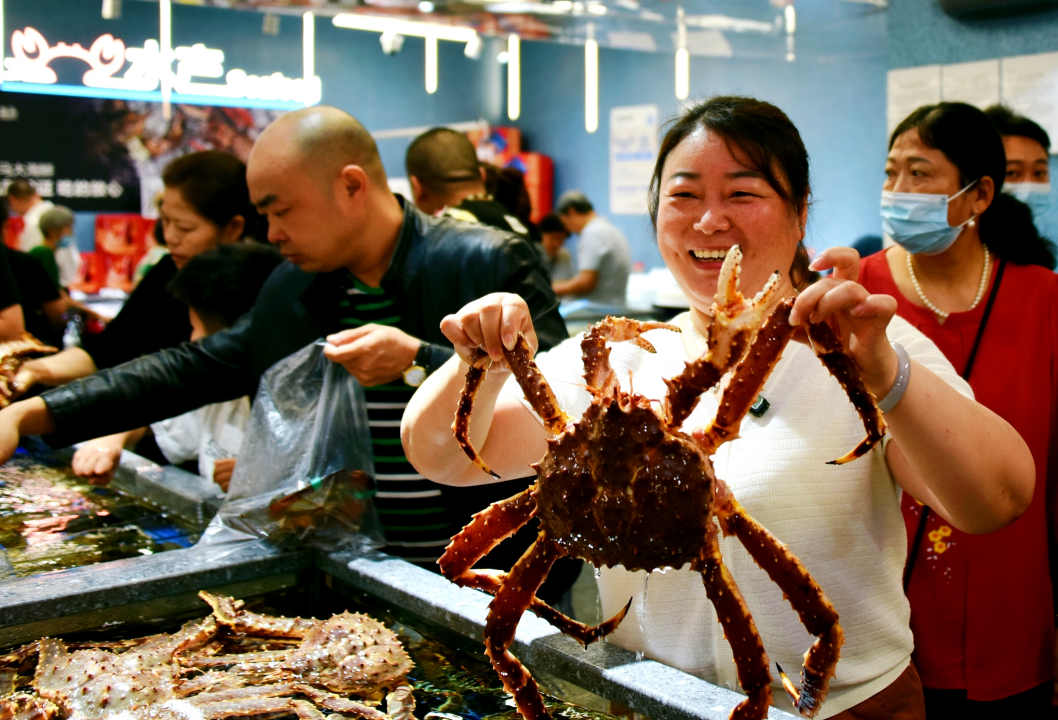 据了解,东七商业街占地18000平方米,运营方宝业东城广场是合肥东部首个33万方大型城市综合体。如今再度晋级,以全新商业模式带给了无数家庭全新的生活体验。强大的品牌效应,优越的地理位置,让刚入驻东七里商业街开业当天就迎来了一波客流“小高峰”。开业现场,盒马鲜生门口和付款处均排起了长龙。帝王蟹、面包蟹、波士顿龙虾、鲍鱼,还有各种贝类、章鱼……“捞海鲜-加工海鲜-吃海鲜”一条龙贴心的服务更让市民省心不少。