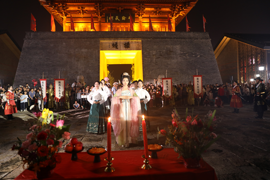 “癸卯年辛酉月中秋夜,拜月仪式吉时已到,司礼者各司其礼……”中秋当晚,伴随着激扬的鼓声,第二届合肥撮城拜月大典启幕。沉浸式的演绎,将穿越千年的拜月大典表现得淋漓尽致,游客们纷纷拿出手机拍摄记录这精彩的一幕。