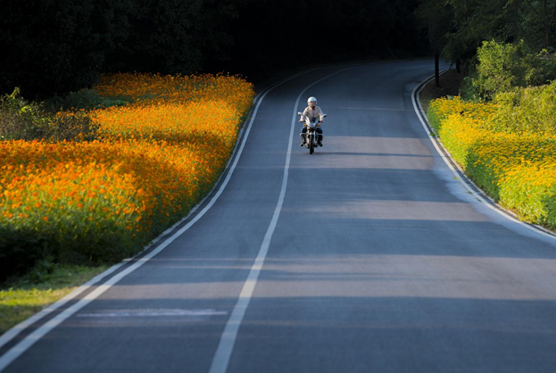金秋时节,走在平天湖环湖道路,只见道路两侧百日草、硫华菊等竞相开放,形成了美丽的花海、五彩的画卷。阵阵微风拂过,花儿草儿轻轻摇曳好似招手期待“池马”选手的到来。