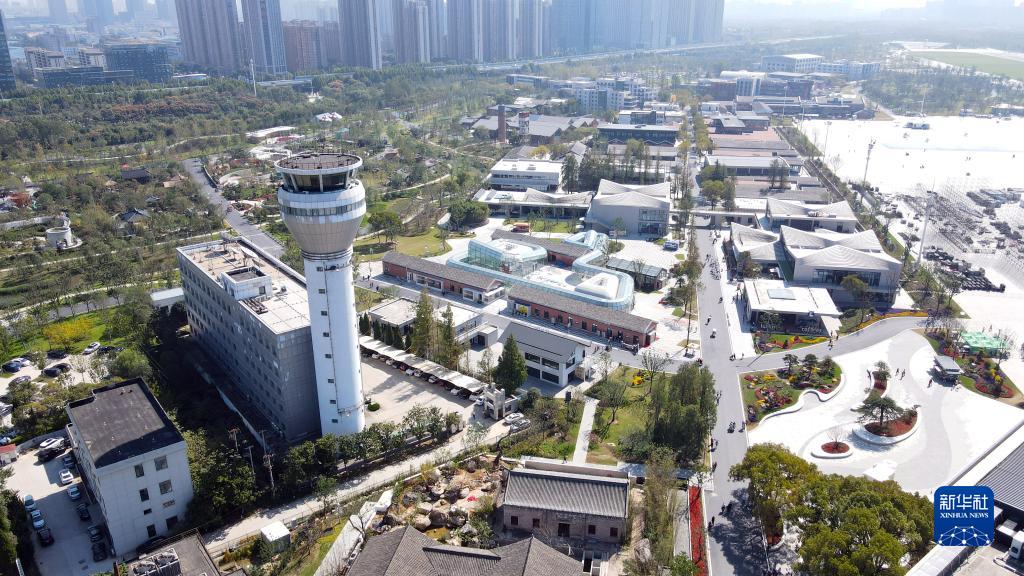 10月17日拍摄的合肥骆岗公园内的园博小镇,该区域由原合肥骆岗机场办公楼、宿舍区等改造而成(无人机照片)。