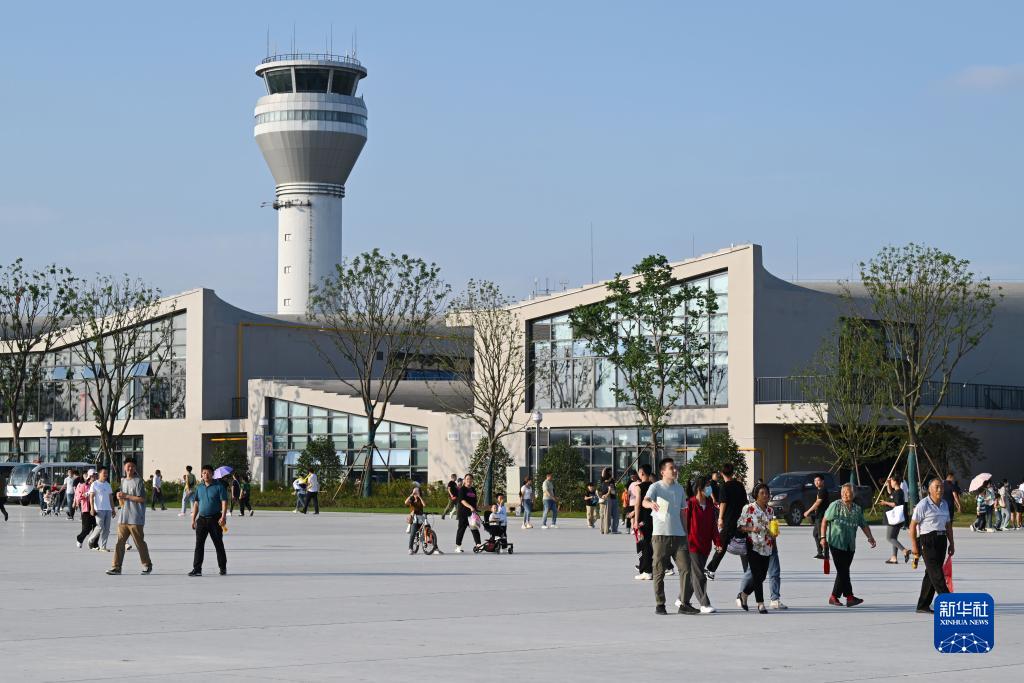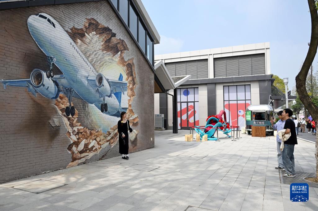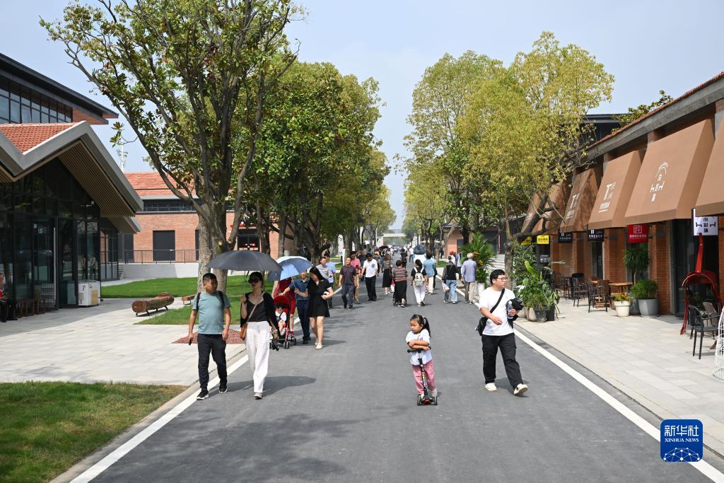 9月27日,游客在合肥骆岗公园内的园博小镇参观,该区域由原合肥骆岗机场办公楼、宿舍区等改造而成。