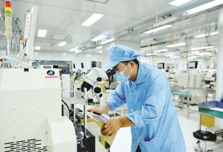安徽禹芯半导体科技有限公司员工进行芯片焊线封装。